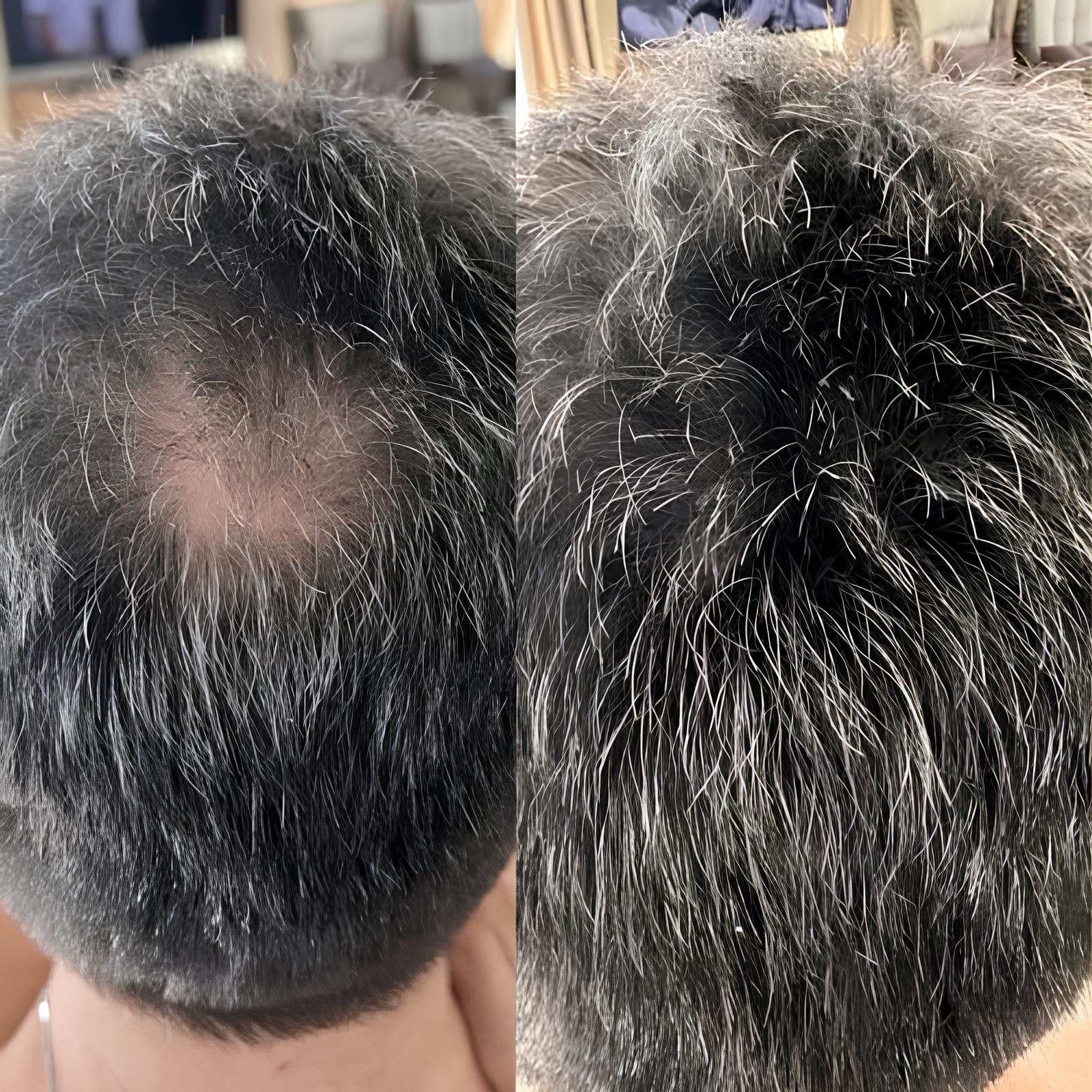 Prodotto eccezionale. Compre molto bene le parti diradate ed anche quei pochi capelli bianchi. Non è però adatto per coprire ampie zone bianche o ricrescita evidente (per quello bisogna usare prodotti coloranti). Da quando ho iniziato ad usarlo non ne posso fare a meno